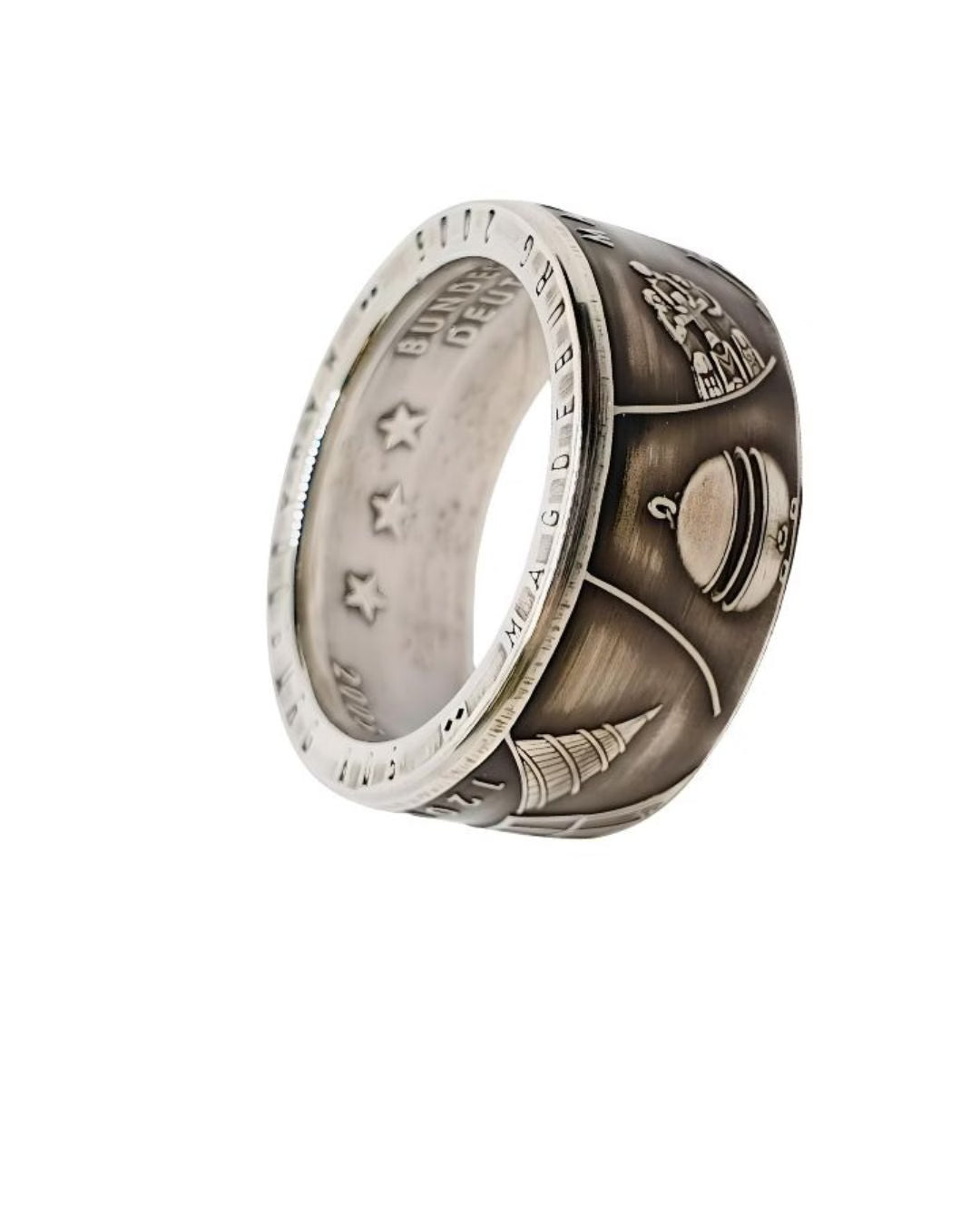 Dieser handgefertigte Silberring aus einer originalen 10 Euro Gedenkmünze von 2005 ehrt Magdeburg als Ottostadt mit 1200 Jahren Geschichte. Ein Ring für alle Geschichtsliebhaber, die die erste deutsche Kaiserstadt und ihre bedeutende Vergangenheit schätzen.