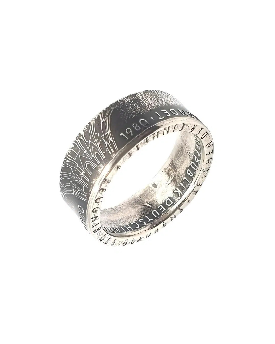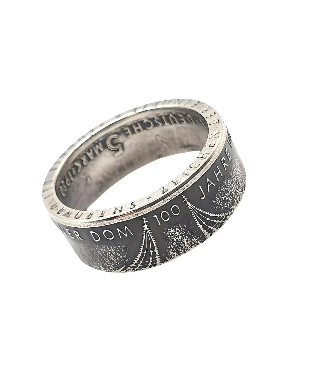 Dieser handgefertigte Ring aus einer originalen 5 Deutsche Mark Gedenkmünze von 1980 ehrt den Kölner Dom als UNESCO-Weltkulturerbe. Ein Ring, der die gotische Baukunst und 632 Jahre Baugeschichte würdigt.